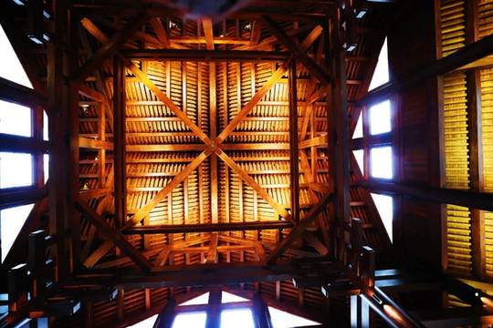 横梁最大跨度达14米,国内独一无二,暂时还没有超过14米的木横梁跨度,技术十分精湛。