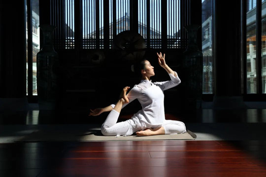 看看正在表演的瑜伽老师,就能感受到这道阳光的美感。