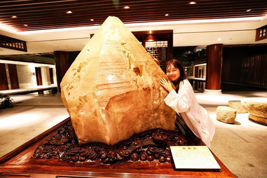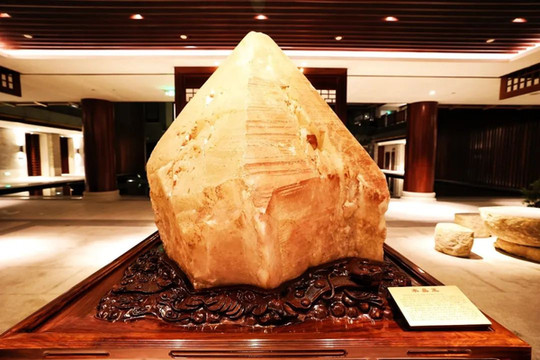 就在菩提园的另一边,有一块超级大的水晶石,此水晶王产自巴西,长157cm,宽136cm,高145cm,重约3.3吨。二氧化硅(SiO2)含量高达99.99%,据说,这是穿越时空的产物,这至少需要25亿年以上的稳定地质条件方可形成,属于水晶中的极品。晶体柱面有横纹,外观宛如大钻石,在阳光照耀下,晶体晶莹剔透,晶面熠熠闪光,犹如神玉,实属旷世奇石,被誉为“水晶王”。