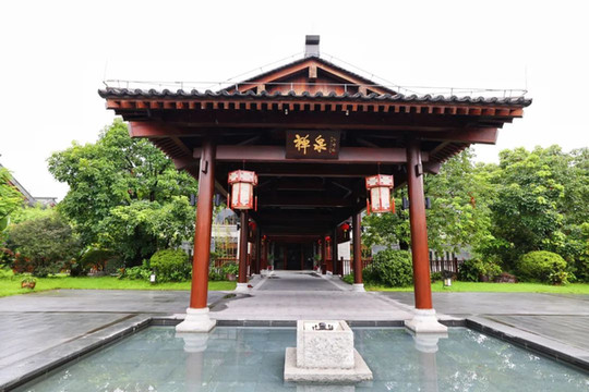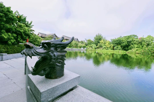 禅道紧邻龙山湖,安放有铜制十二生肖兽首且景色宜人。