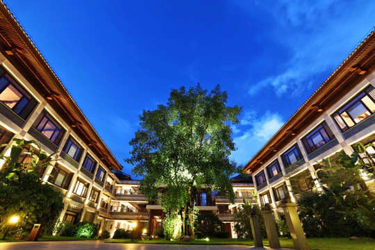 而酒店这颗菩提树是从印度深山老林中移植,树龄有200多年了。