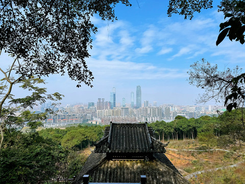 吃完从观音寺出来,再往前走个几百米,到了桃花坞那站,有个网红打卡点,叫古今中外,就是有古代的亭子和远处现代的城市同在一个画框里。