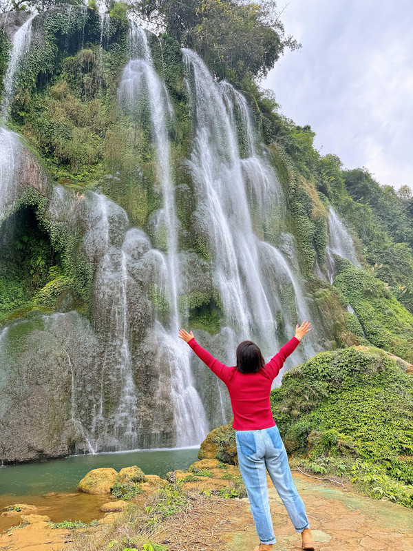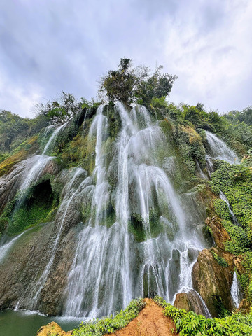 三叠岭瀑布就在国道的公路边,没有景区,也没有售票处,单独辟了一块地,作为停车场,然后3,5分钟爬几个台阶,就能看到三叠岭的全貌,如果说德天瀑布壮观,这个三叠岭瀑布就是秀美,路过的话,还是值得爬上去看一下的,多走几步就有不一样的风景,尤其是这个瀑布的对面,还能看到一条穿梭在两个山间的高架高速,也很壮观!