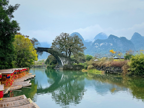 烟雨中的阳朔,别有一番美意,只是今天雨实在是太大了,以至于我们的十里画廊也是开车游览,同时摄影师此时正在兼职司机,也没有留下照片,都说眼睛是最好的相机,就把这段旅途的风景都用这“人工相机”来记录吧!