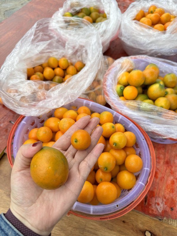 景点还有卖金桔的大娘,价格很便宜,比我们这边便宜太多了,而且,运到我们这边的水果,基本上都是没有太成熟的,所以皮厚,口感也没有当地的皮薄和多汁。可能也是因为是自己家产的,买了很多,也送了很多,乡里乡亲的,都很淳朴!我一直在跟我爸妈说,我从来没吃过这么脆甜的金桔,我好没出息啊!
