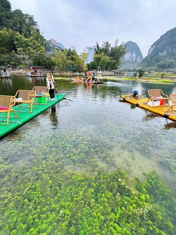 鹅泉的景区不大,一个小时游览足够了。65岁以上的老人都免票,如果你是住在鹅泉这个风景区的宾馆,早上8点钟之前,是不需要门票的,所以这个住不住景区的逻辑跟德天瀑布雷同,鹅泉的泉水很浅很清,里面的水草一览无余。坐竹筏的话,10块钱一个人。