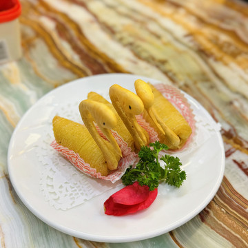 继续说回“椿记烧鹅”,出发前在很多社交平台上都看到有人推荐这家餐厅,本来就想着要去吃的,结果很巧的是,我们住的酒店旁边就有一家,走个80米就到了。这家餐厅应该是当地人举办酒席的地方,当然里面也划分了一块散客区域,相对比较安静,厨房是明档,菜品上来也贴好了厨师的标签,方便责任到人。饭店很规矩,菜量也很大,我们家三个人点了4个菜根本都没有吃完,属实有点浪费了。不过真的比很多连锁饭店的预制菜口味好太多了!烧鹅和香辣鹅头非常好吃!