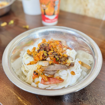 本来还想花里胡哨的点加料的那种,结果看当地人就是2两粉(5.5元),其他啥也不要。我跟风成功了,3个人吃了17块钱,饱饱的,粉有两种,一种是米粉(圆的),一种是切粉(宽的),随便选,价格一样。个人认为切粉好吃点。