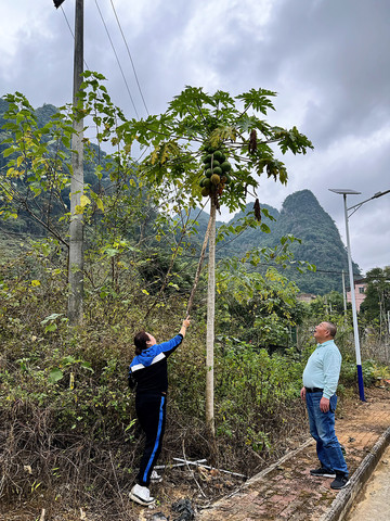 然后一路带着我们到村里,说村里有最美的泉水,我们从小玩到大的地方。摘木瓜,摘火龙果,我也从来没有吃过这么甜的火龙果,虽然小,但是一口下去就爆汁了!