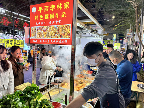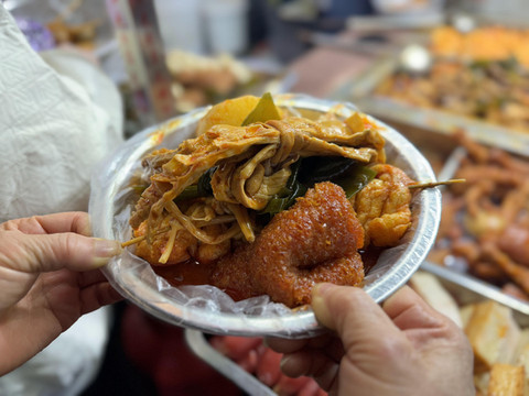 这家排队最多,好像说是什么网红,我们就选了这家,有点像我们这边的麻辣烫,他们是放在卤锅里卤好了,然后你要吃什么从锅里挑,然后在放到螺蛳那个汤里烫一下!