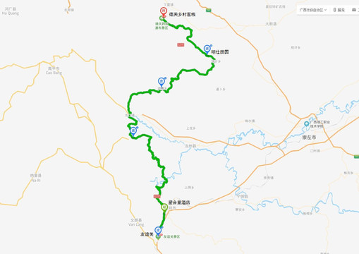 今天将离开海边,向内地进发。广西景点分布较为分散,但有两大重点区域,一是西南部边境地区,二是东北部的桂林一带。我们打算先沿中越边境线向西,到达桂(广西)滇(云南)省界,再折返向东前往桂林,最后向北出广西返沪。