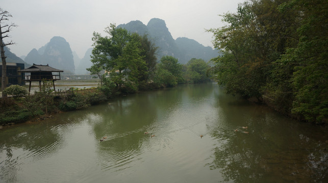 明仕田园面积很大,主要包含明仕河上游自然的河流、田园风光和下游处建设的壮族民居博物园等。游客前来游玩有竹筏漂流和陆上观光两种方式,一般准备半天时间前来游玩比较合适。也有很多游客会选择在景区内住宿一晚,悠闲地感受周围美景,体味田园生活的清新和幽静。我们没有那么多时间,就没有购票入园,只是在外围看了看。