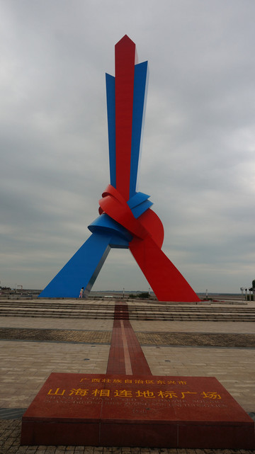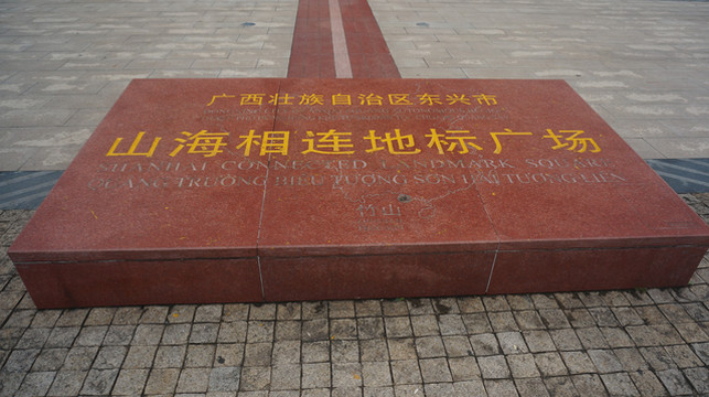 零点标志对面有一个广场,叫做山海相连地标广场,这里是我国海岸线的西端终点和陆路边境线的东端起点,与东盟(越南)的海陆边境线交汇处。