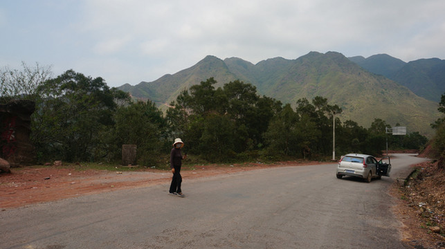离开东兴市继续西行,过了一段修路路段后,逐渐进入山区。沿边公路所经地段大多是深山密林,地势险恶,山高坡陡,道路曲折,大部分路程是来去各一车道,但进山后许多路段的路中间没有分界线,勉强能让两车交会通过。建议自驾的朋友要特别当心,没有山区驾驶经验的最好不要冒险。