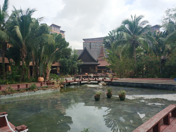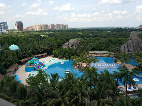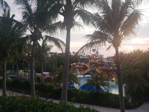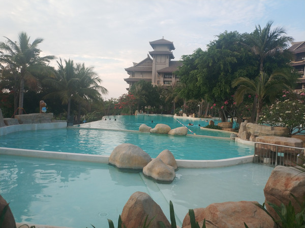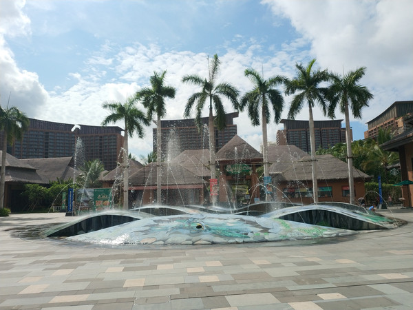 饭后开车直奔酒店,酒店就在海南环岛高速西线的一个出口不远处,高速一下来就是富力红树湾景区,酒店在景区里面,门卫一听是住酒店,测温后就指示了酒店的位置放行了。