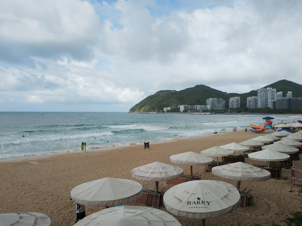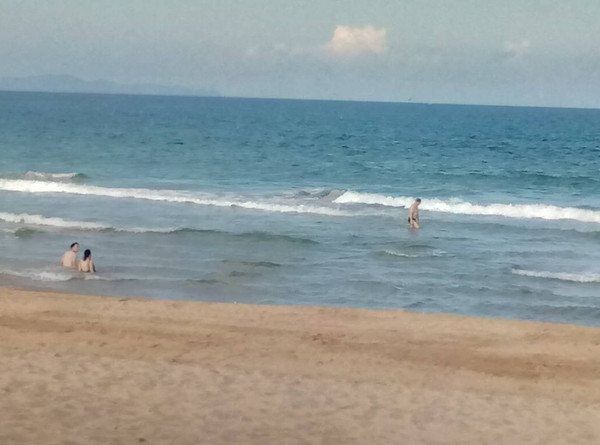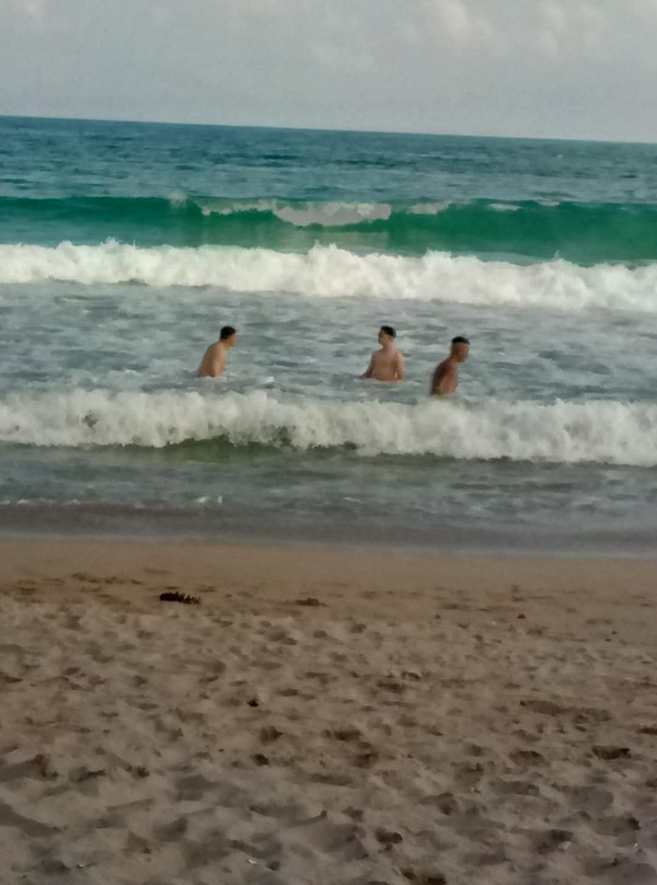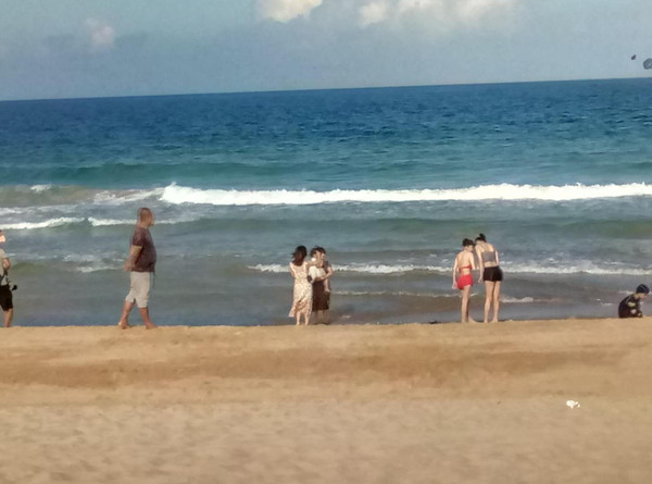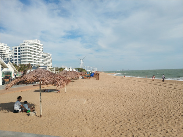 游人不多,下海游泳的就只有2、3个人,除了周围正在开发楼盘上有些工人在忙碌,