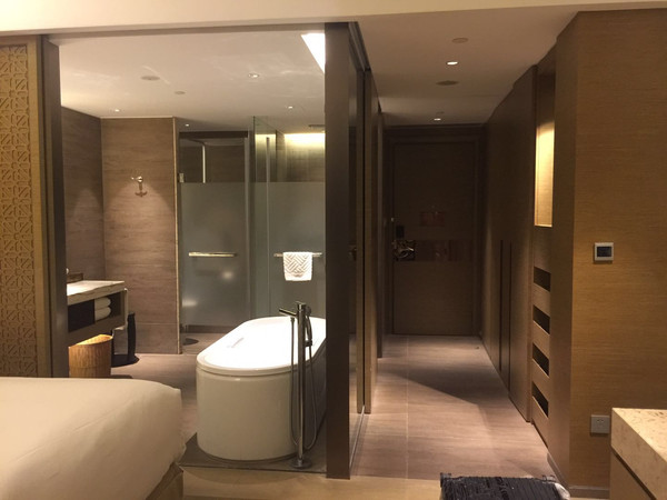 入住房间的房间入门后墙上有多面镜子,使得60左右平的房间感觉像100平似的。
