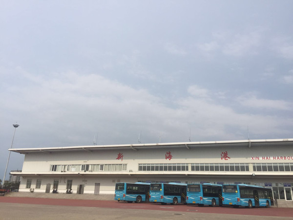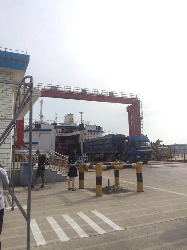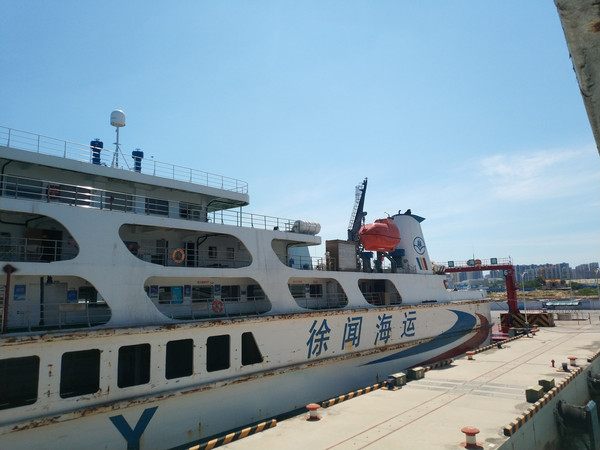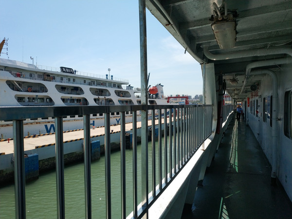 两个小时后抵达海口新海港,货车先下,然后随车人员步行下船。