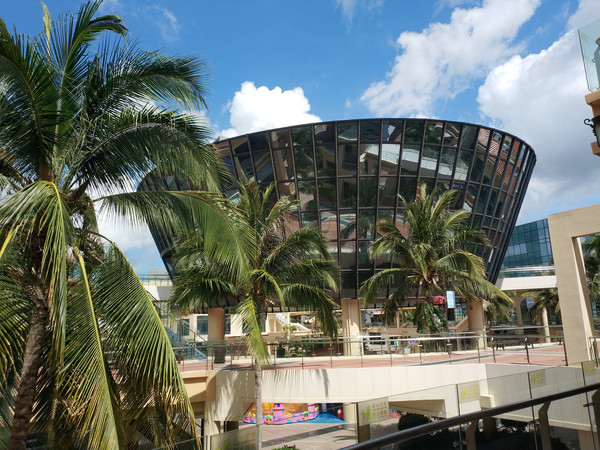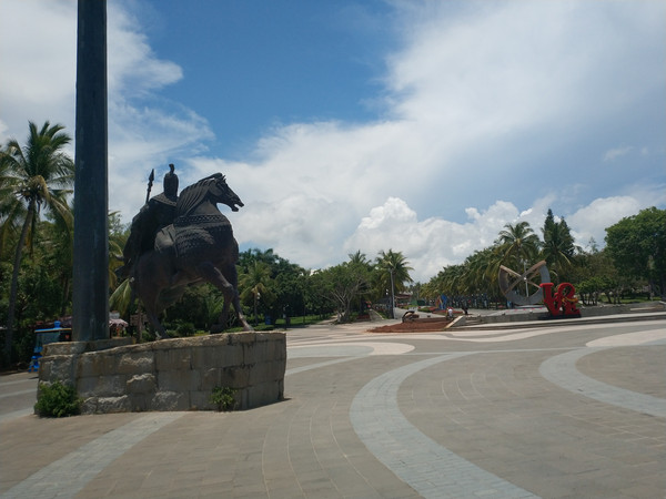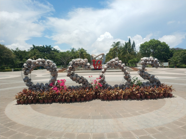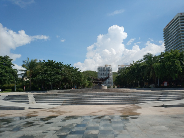 宽阔的椰林大道两边是雕塑、草地、回廊、小路和海滩,远处海岸线上能看到市中心区域的高楼大厦,环境优美、风光旖旎,但气温太高,拍完一些照片后,前往入住位于西海岸的喜来登酒店。