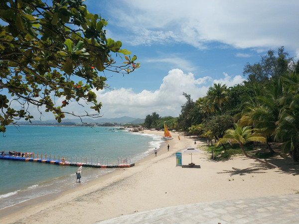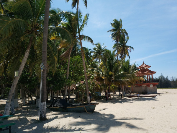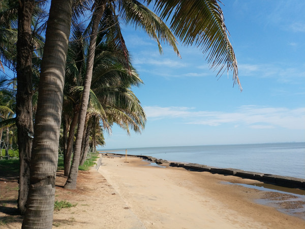 这里游客不多,边欣赏茂盛的椰林,边漫步在沙滩上,看着蔚蓝色大海,感受着热带耶林风情!