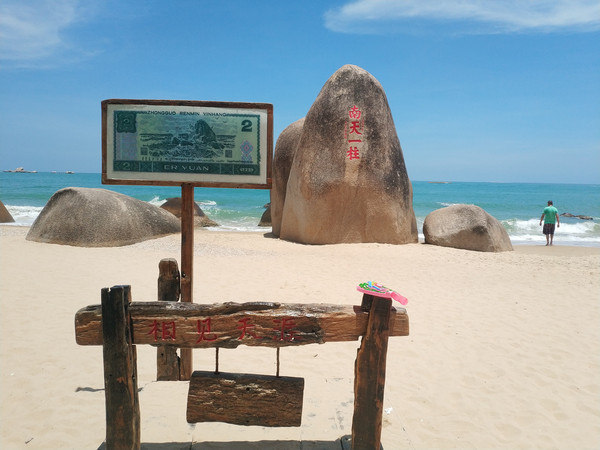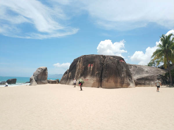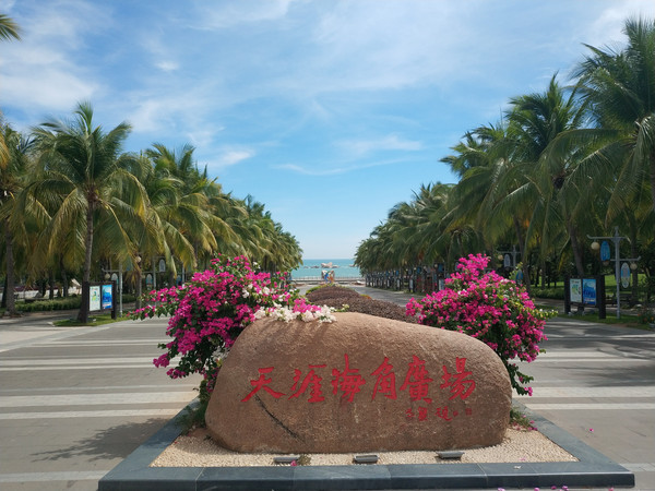 又开了半个小时就来到了大约二、三十公里外的著名的天涯海角景区,岳母没有来过这里,这次是专门陪她来看看天涯海角的,门口有几个停车场,游人不算多,离售票厅最近的一号停车场也没有停满,在树荫下找了个停车位后买票进景区,测温、扫码进门后就有电瓶车。