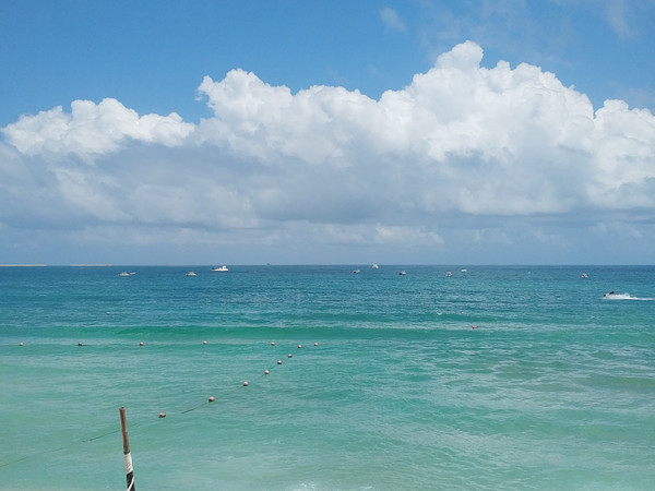 回房间站在阳台想远方眺望,蓝色的海面上白云在慢悠悠地飘荡,风景再美也到了告别的时候。
