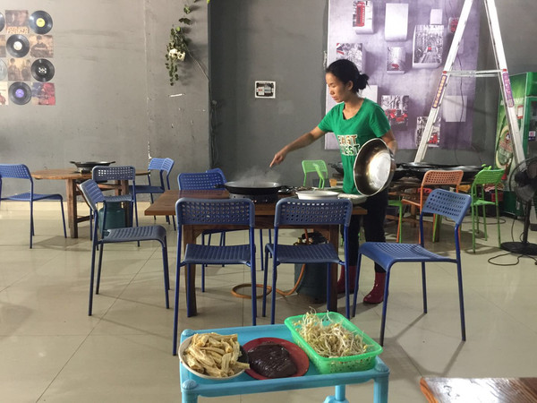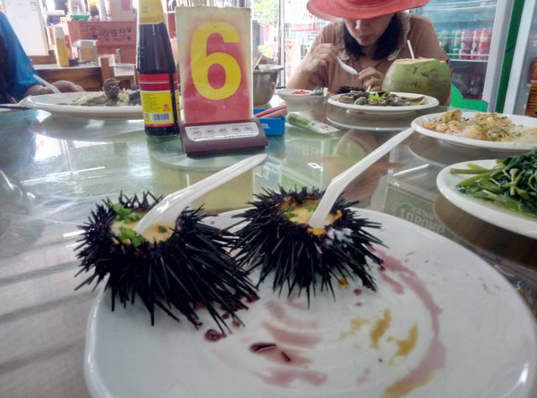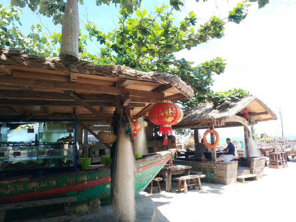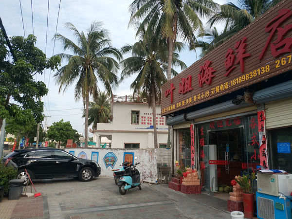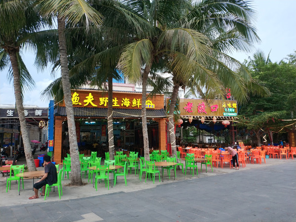 恋恋不舍地离开海滩去6公里之外的昌江镇上的叶姐海鲜店吃晚餐,