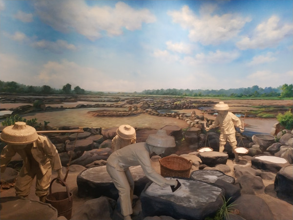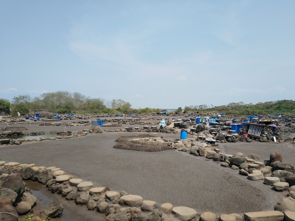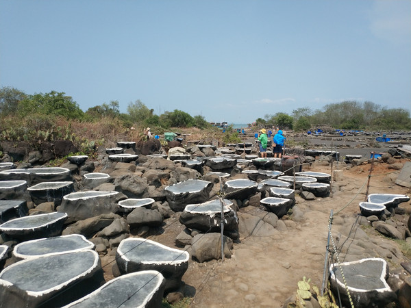 有不少游人在盐田中游弋,眼前浮现出了海南岛原住民在阳光下挥汗如雨用海水制盐的场景。