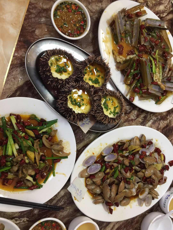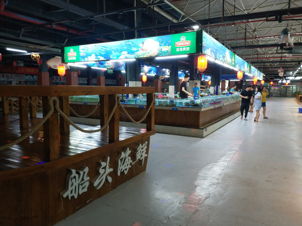 傍晚时分驱车来到几公里外的环球渔港,休渔期卖海鲜的摊贩不算多,但也足够我们选择了。