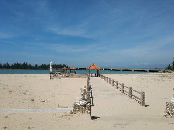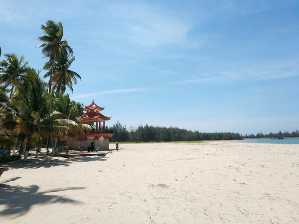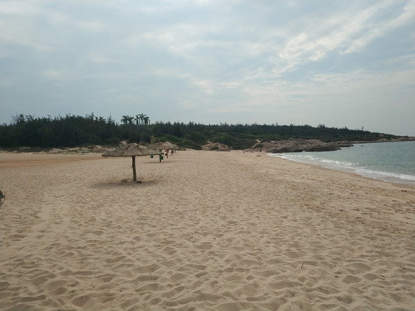 环境显得优雅而冷清,沙滩很长、砂子细腻柔软,没怎么开发的海滩显得有些异域风情。