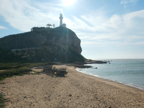 午睡后去鱼麟洲景区游玩,那里还是解放海南时的一个登陆点,建筑在沙滩边的小山上的灯塔高冷地指引着航船回归东方港码头。