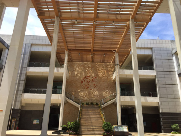 是一座仿古建筑,馆里的二、三楼展出海南历代名人的生平事迹和一些艺术摄影作品等,为“流海人文”平添风采。来而不进非礼也,于是进去看了半个小时后前往海南省博物馆。
