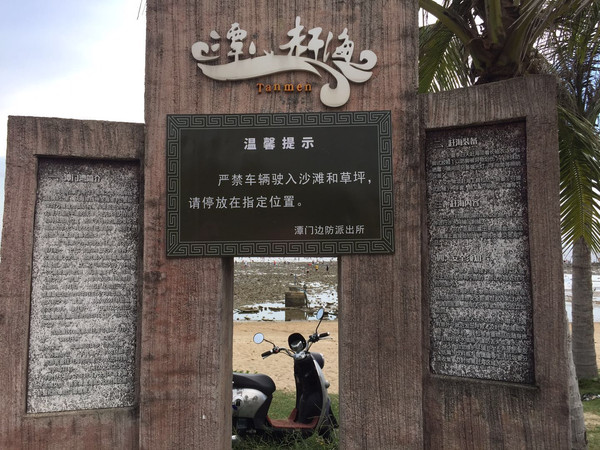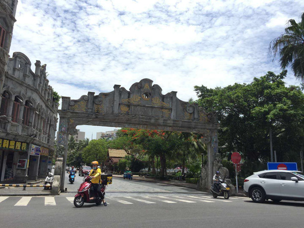 根据导航提示,没有走高速,而是走了海榆西线,但有段路在修,路面坑坑洼洼的,好在路程短,我们开的SUV车底盘还算高,并无大碍,到达崖州古城门口,路边就有停车位,免费停车,来去自由。