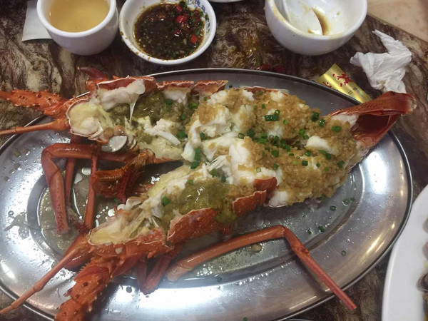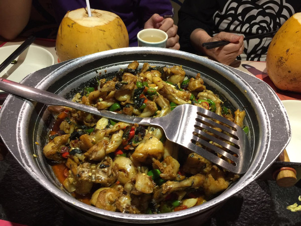 选购了螃蟹、石斑鱼、大对虾、还有几种贝壳,总共大约8斤左右,到附近的琼星酒楼加工,餐馆按每斤12元收加工费,比三亚的加工费便宜很多哦。