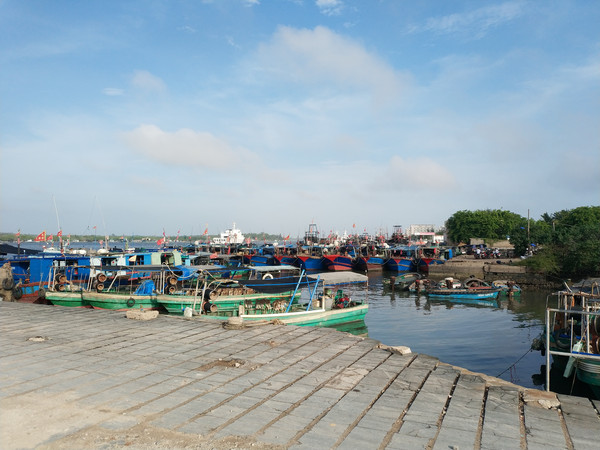 又开了大约60多公里,我们来到了三亚崖州中心渔港,港池中停满了各式大大小小的渔船,因是休渔季,所以交易市场根本就没有开放,只是在临时搭建的交易棚中有少许摊贩摆放着品种不多的海鲜在售卖,本打算在这里买些海鲜去旁边的餐馆加工午餐的,但看如此萧条,而且时间尚早,就转身离开渔港去崖州古城游览了。