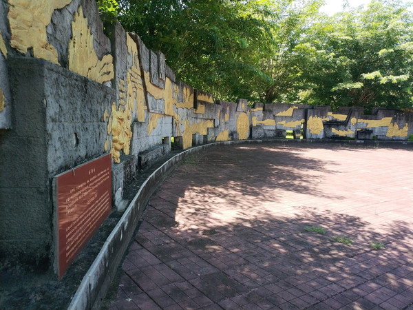 安装在一米多高的基座上,安置在入口道路的两边供游人参观。