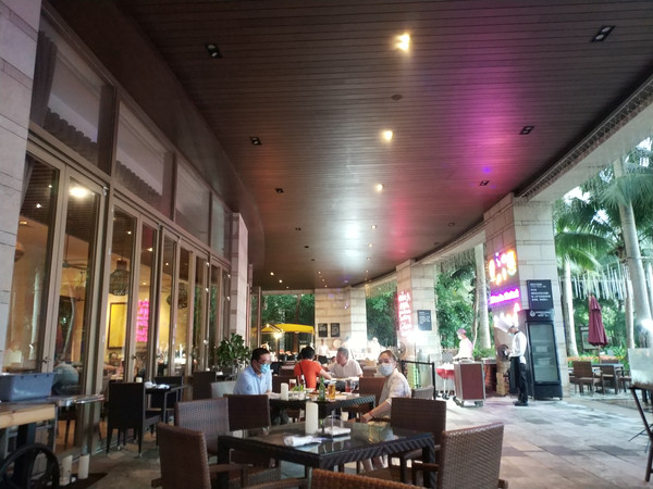 有几家餐厅开放,超市和儿童娱乐世界也是开放的,但游客寥寥,疫情造成的影响巨大啊。泳池中人也很少,这么优美的环境却冷冷清清,不禁让人有些唏嘘。