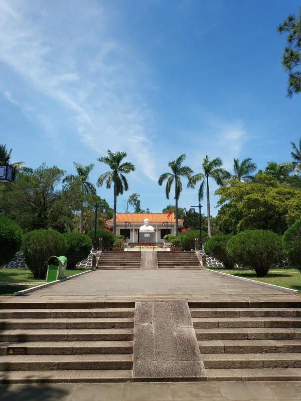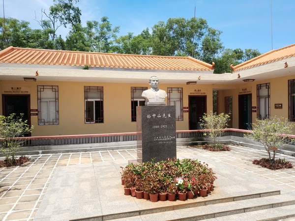 门前有宋庆龄石像,馆内庭院中有孙中山头像。