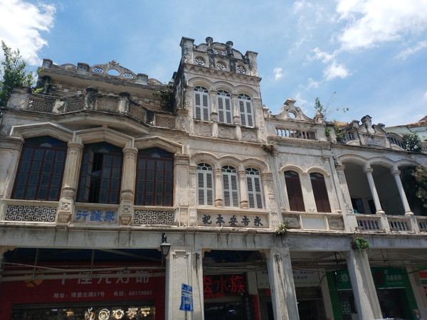 骑楼是从南洋回来的华侨借鉴当地的建筑风格所建,现在这些南洋建筑经营着各种店铺。