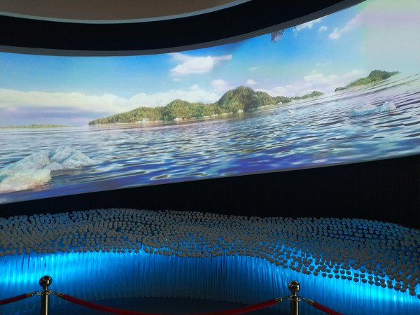 5分钟360度的环屏幕电影循环播放海南岛的地质形成及历史变迁已经商贸船只的沉浮。