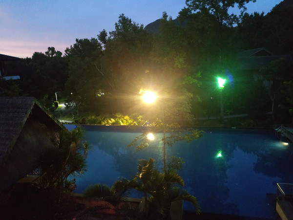 红树林里的栈道的彩灯很清晰的勾勒出可散步的途径,在这么优美安静的环境中度过了甜美的一晚。