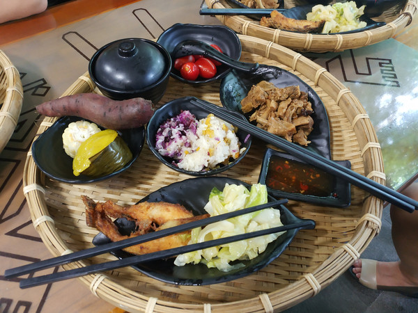 早晨7点,度假中心的工作人员送来了早餐,有豆浆、炒河粉和红薯、玉米、烧卖、鸡蛋等几样点心。