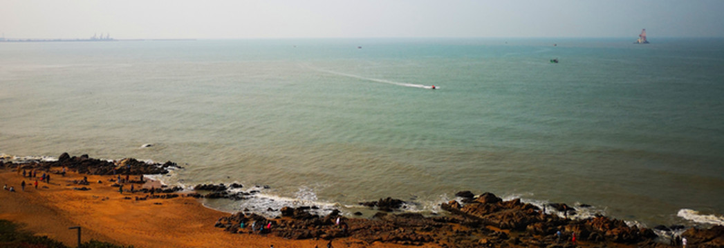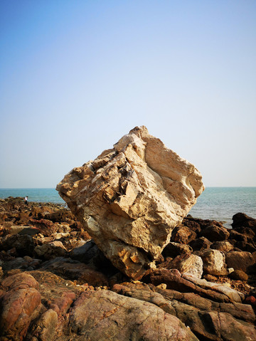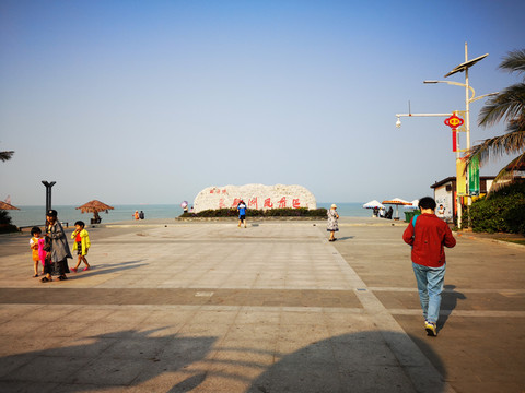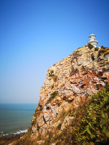 更吸引游人的是,白色的灯塔在岩石山上突兀地矗立着。这座灯塔既是鱼鳞洲的标志,也是东方市的标志,是北部湾重要的航标。
