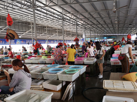 八所中心渔港是个游人较多的地方,有港湾、渔船,还有大型海鲜市场。据称这里是海南三大渔港之一,琼海市的潭门也是一个。听说即将建设“八所中心渔港升级改造+渔业风情街”项目,未来八所中心渔港水深从3.5米增加到6米,停船面积从34.2公顷增加到46.3公顷,停靠渔船总数增加到1000艘,并接纳东盟国家渔船停靠和交易,带动年渔获量从3万吨增加到8至10万吨,还要建设500米长的海洋文化步行街等工程。