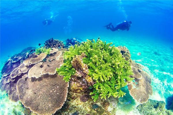 拥有银白色海滩,沙质细腻;海水洁净透明,可清楚观赏珊瑚,远望呈现几种不同的蓝色,风景非常秀丽。