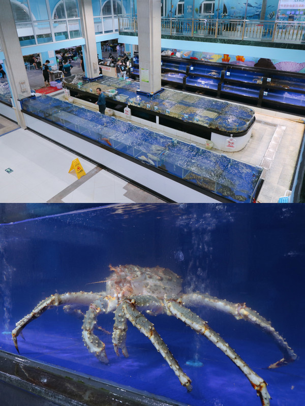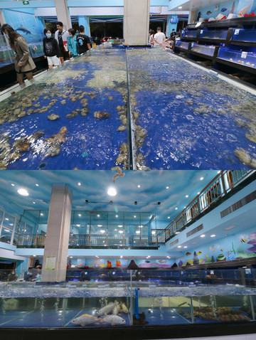 海鲜广场里有海鲜的卖场,在这里可以买到新鲜的海鲜,然后直接到店铺里加工。推荐让店员带着你一起来海鲜区这边采购,或者直接让店员代买。