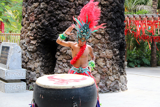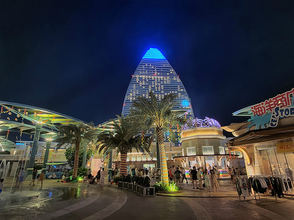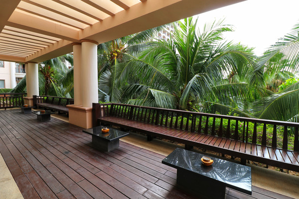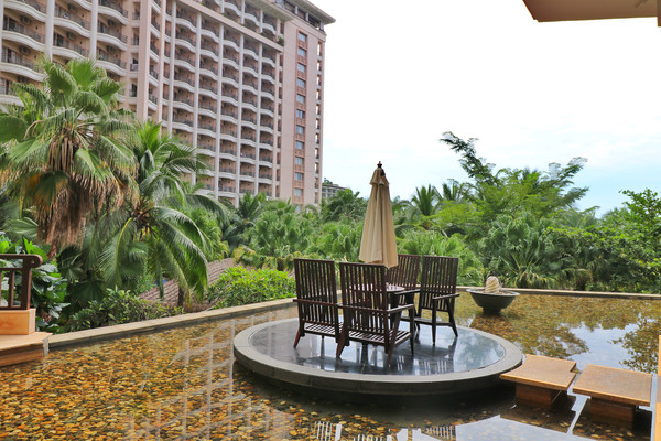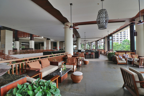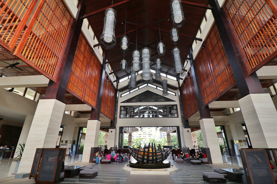 酒店是东南亚建筑风格,融合海南的黎族文化。