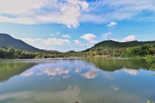 青山碧水草地,这里的风景真的太美了。来到这次我才知道,原来海南岛不仅仅是椰风海韵,还有着类似桂林山水的柔情秀美。