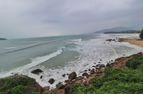从海口出发大约一个半小时左右就能抵达万宁。我们直接就来到万宁的石梅湾。石梅湾由两个形如新月的海湾组成,长达六公里的碧海银滩,为植被茂密的低缓山坡所环抱。