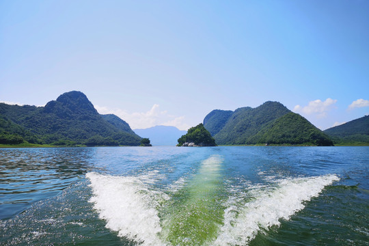 可以乘船游览观光,人们泛舟雅龙湖,犹如置身“桂林山水”之中,故誉其名为东方“小桂林”。